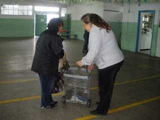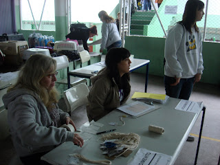 Eu e a Yumi ficamos responsáveis em recepcionar as pessoas que haviam se cadastradoanteriormente, etiquetar as caixas de transporte ( quem não tinha o AUG emprestava). A Susan estava responsável em colocar a etiqueta nos animais.... gatos era tranquilo mas os cachorros não eram seu forte... rs